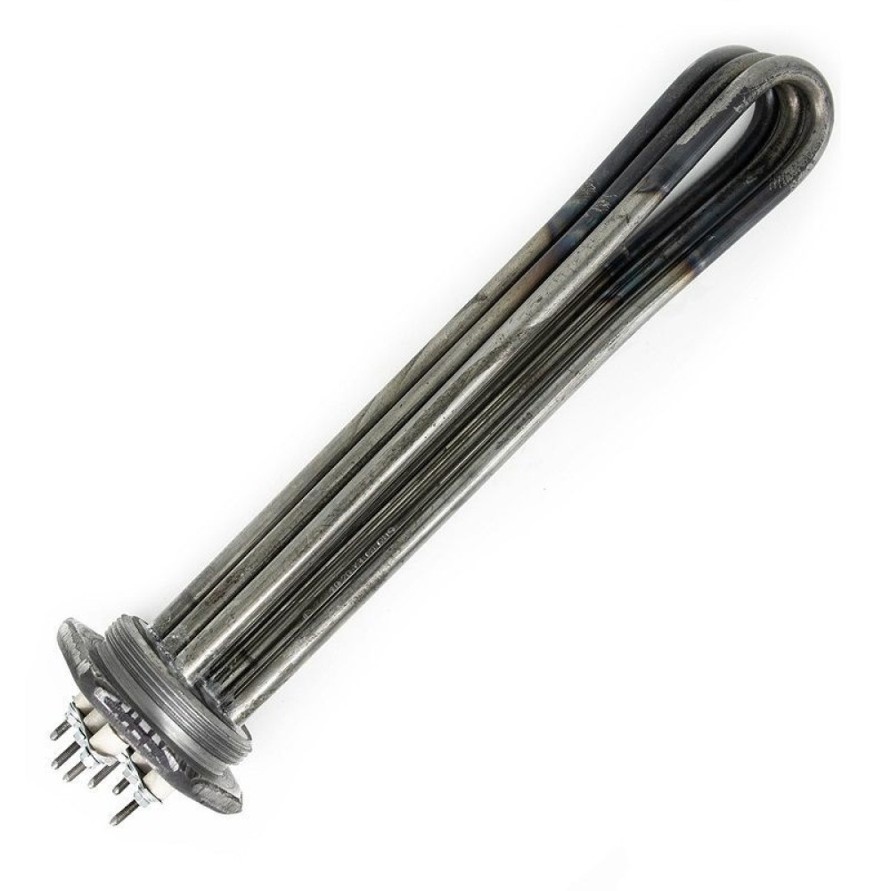 Материал трубки нагревательных элементов - углеродистая сталь. Диаметр нагревательных элементов 13 мм. Диаметр резьбового корпуса 2 1/2".