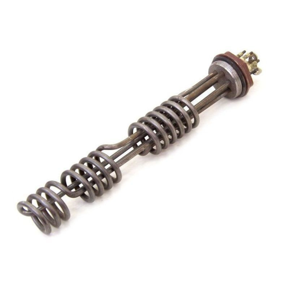 ТЭНы изготовлены из нержавеющей трубки диаметром 7,4 мм. Диаметр резьбового корпуса 2 1/2". За счет оригинальной спиралевидной конструкции нагревателей достигаются компактные размеры ТЭНБ и не допускается критический перегрев поверхности. Это позволяет применять ТЭНБ в нагревателях без протока и использовать в качестве теплоносителя этиленгликолевые растворы.